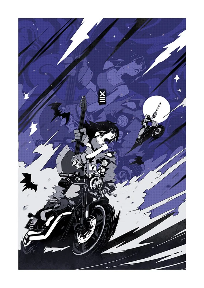 Miss Bliss’s copium acts as a portal to infinite worlds waiting to be explored. Drifting between realms with no destination in mind, her only goal is to escape what awaits her when she stops running.