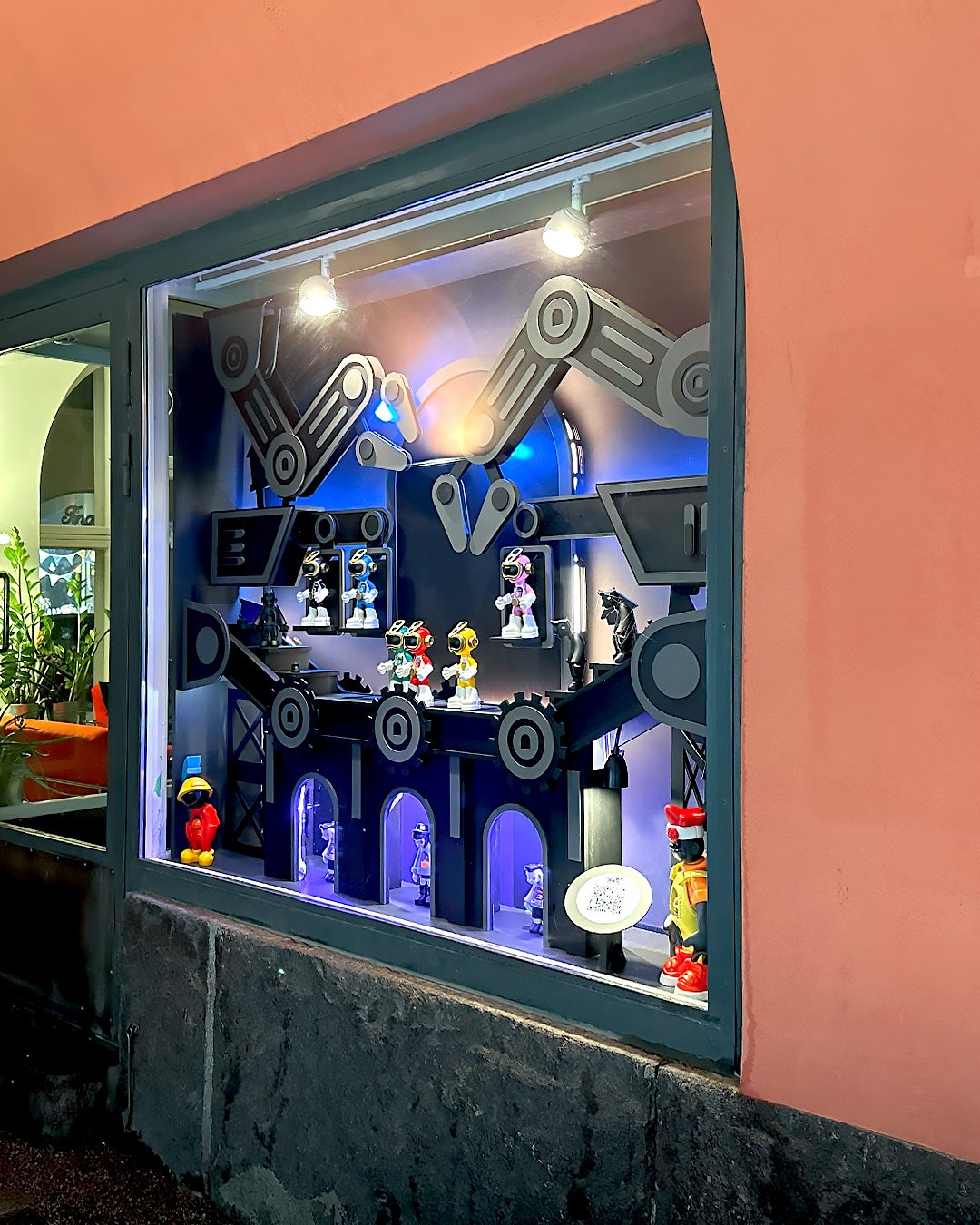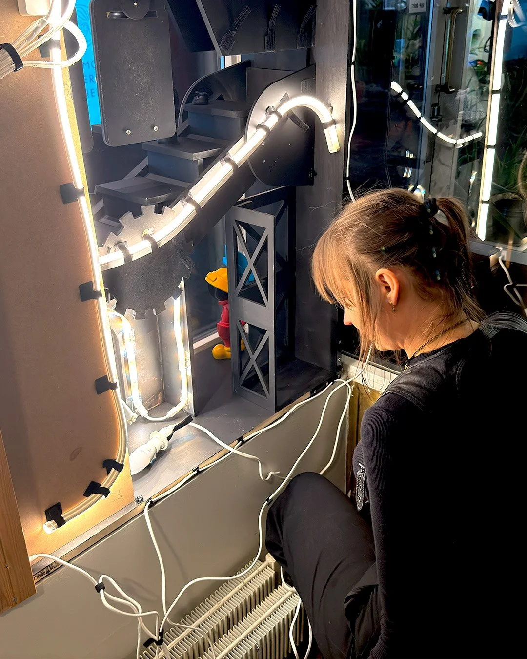 This installation is brought to life by Jenna Mattila and crew. Built by hand using wood construction and integrated electric lighting, the factory environment is physically crafted rather than digitally produced. Every structural element, surface, and illuminated detail reflects the team’s hands on process, reinforcing the idea that both the installation and the joy it represents are intentionally made.